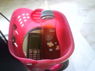kalau naik basikal..ni laa barang yg wajib qaseh bawak....hp..ibu..yg dah rosak tu...dan botol susu..supaya senang..pabila berehat di hentian mana...ku tonggang aje...
